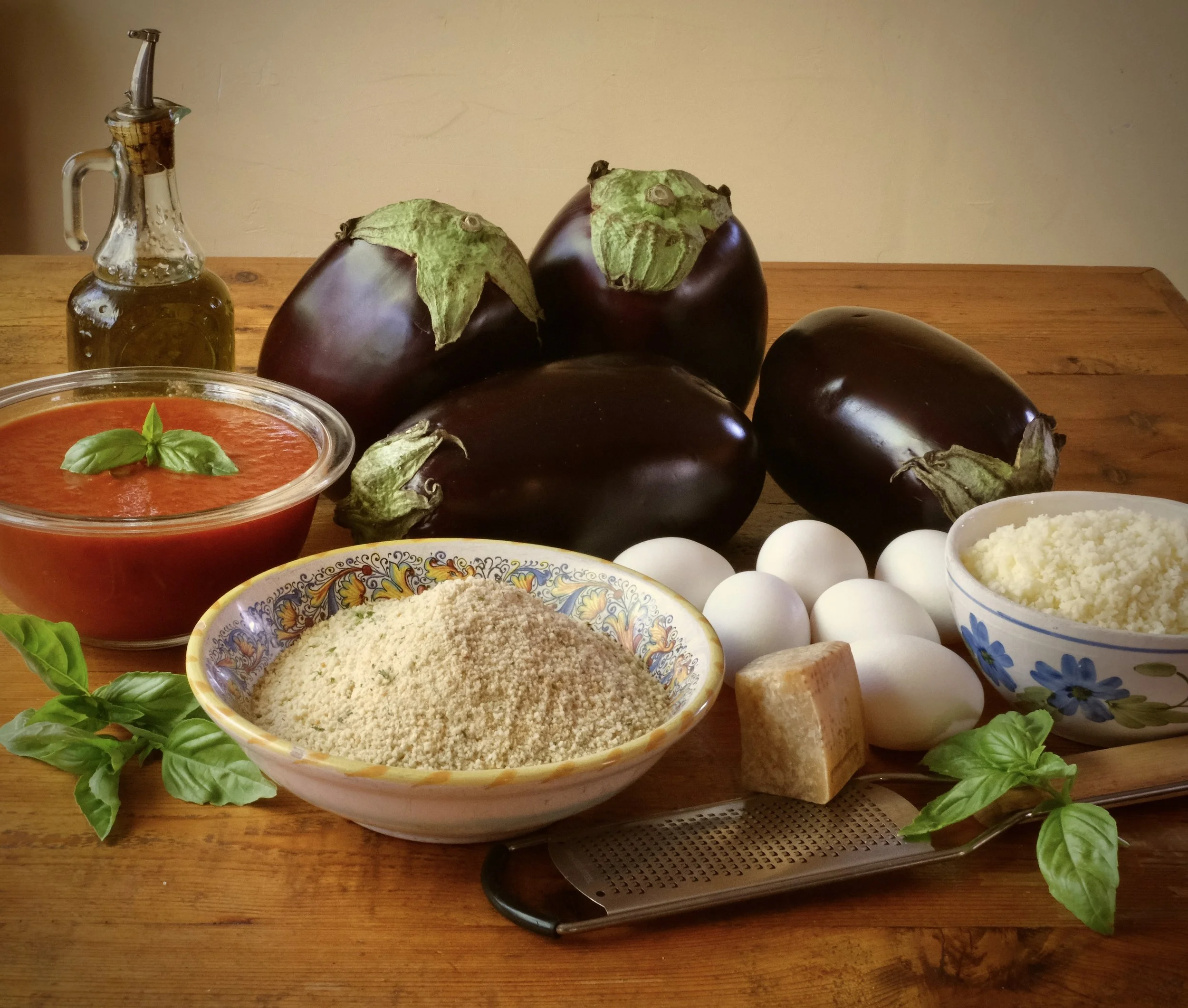 Grilled Leg of Goat, Eggplant Parmigiana and Sardinian Fregula Pilaf. / Cosciotto di Capra alla Griglia, Parmigiana di Melanzane e Fregula Pilaf Sarda..
