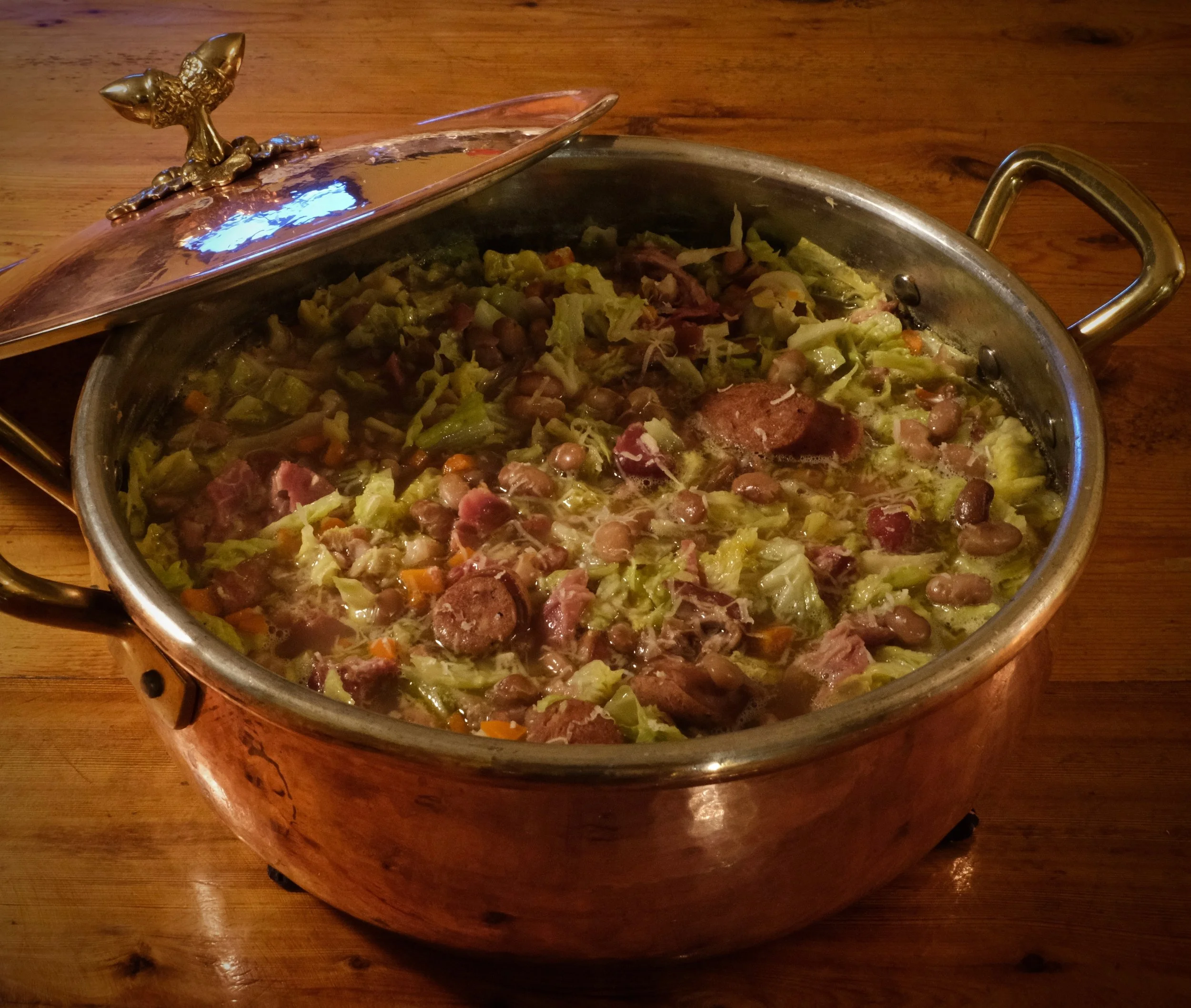 Borlotti Beans with Savoy Cabbage and Shredded Pork.