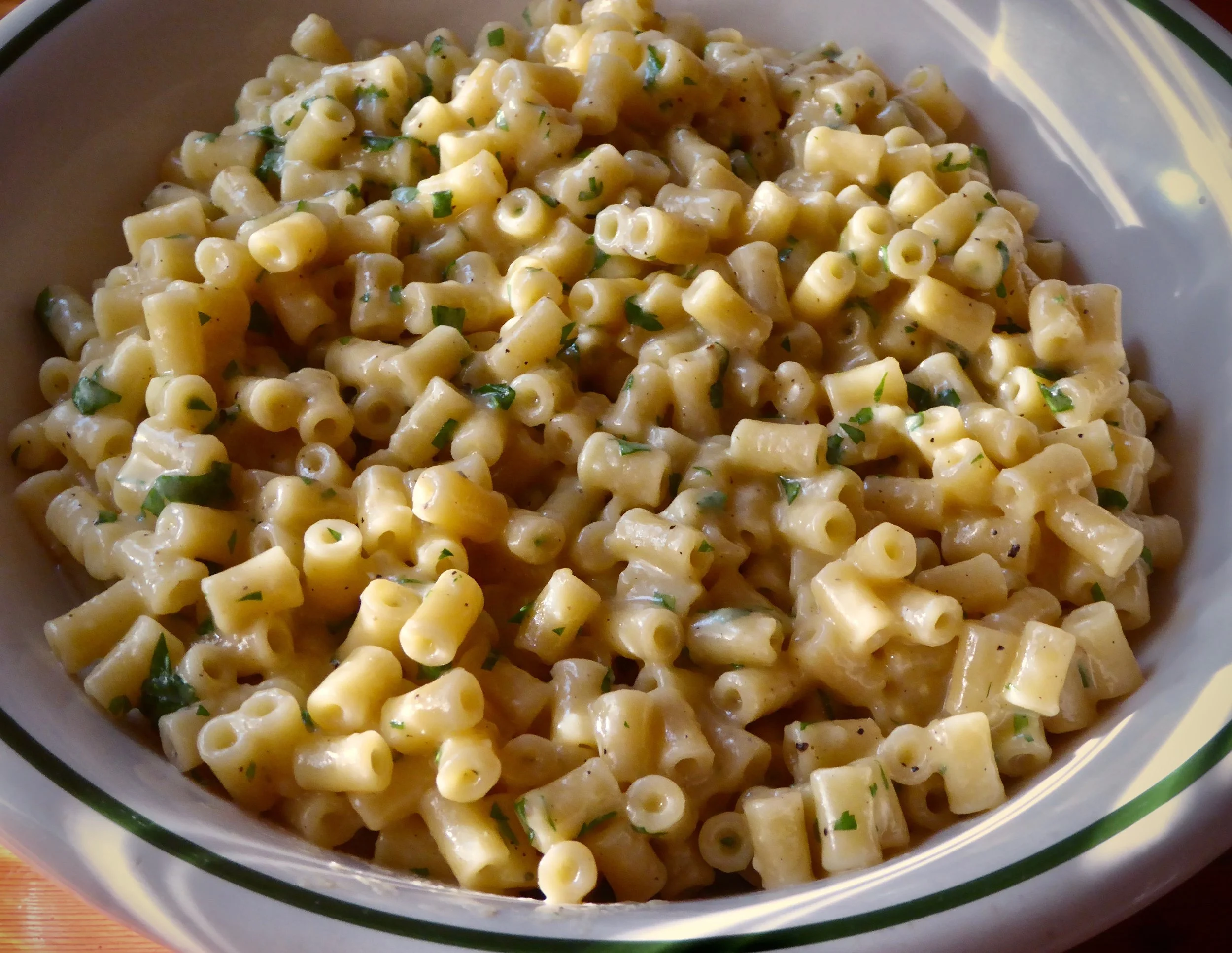 Penne con Formaggio di Capra, Rucola e Noce Moscata.