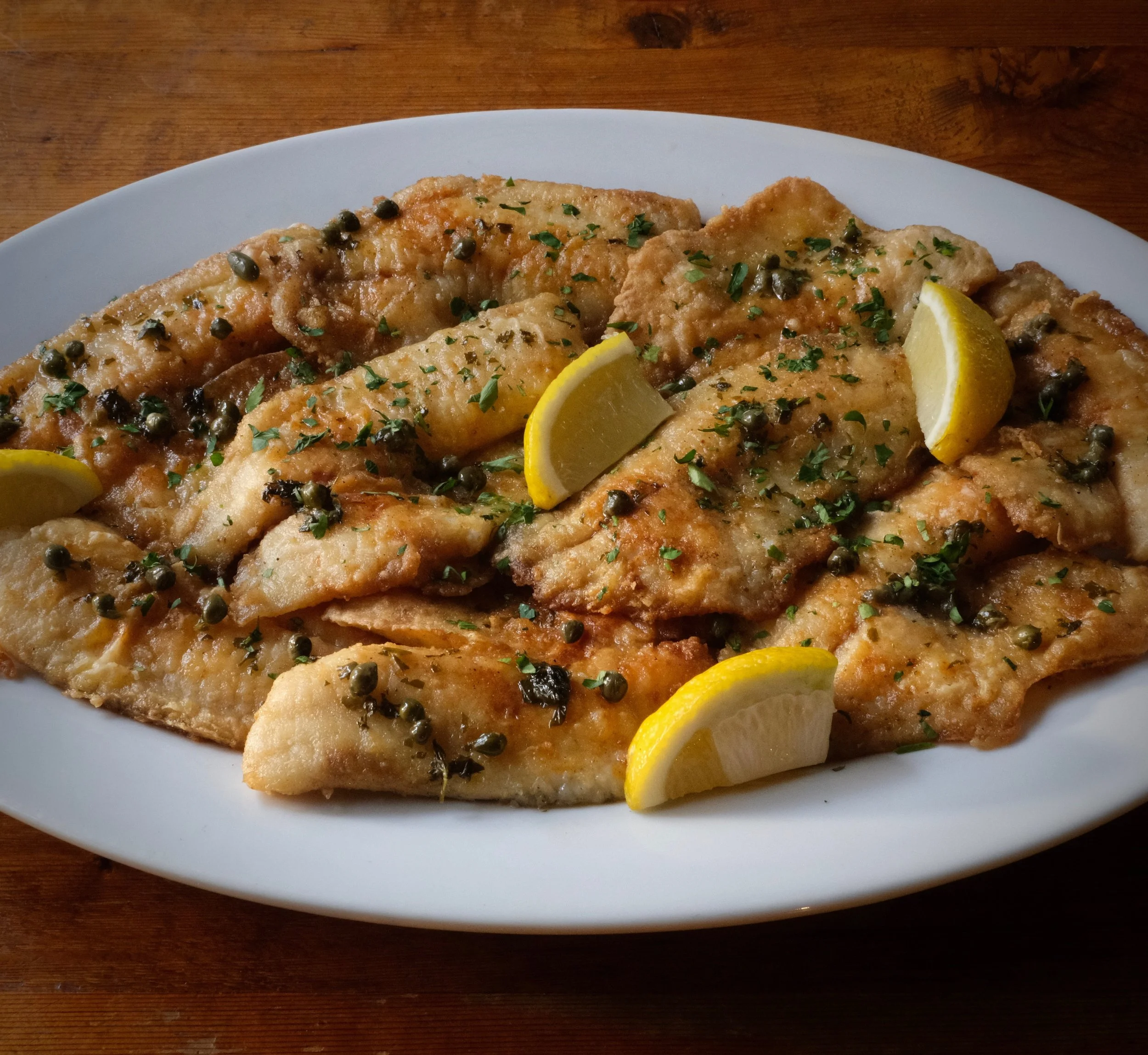 Pan-seared Tilapia with Lemon Parsley Caper Sauce.
