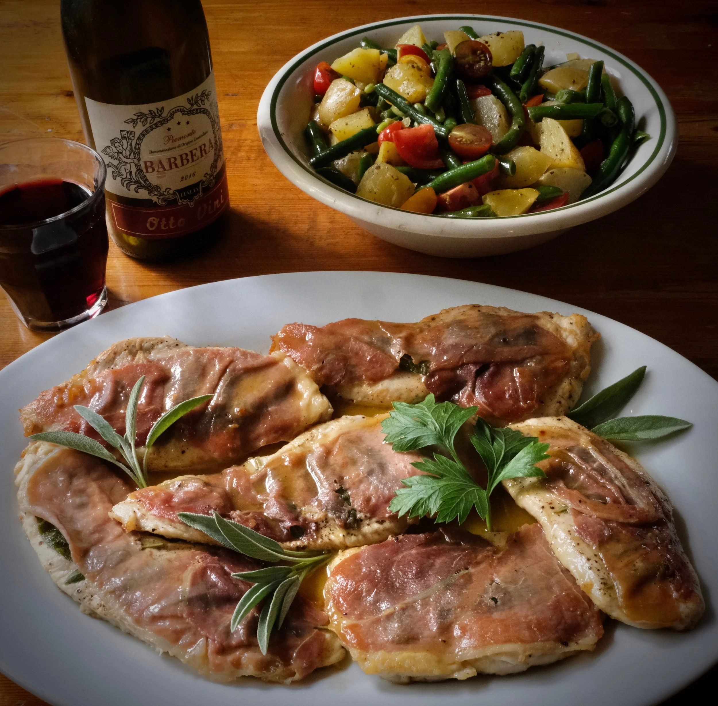 Baked Pork Chops stuffed with Prosciutto, Sage and Mozzarella /