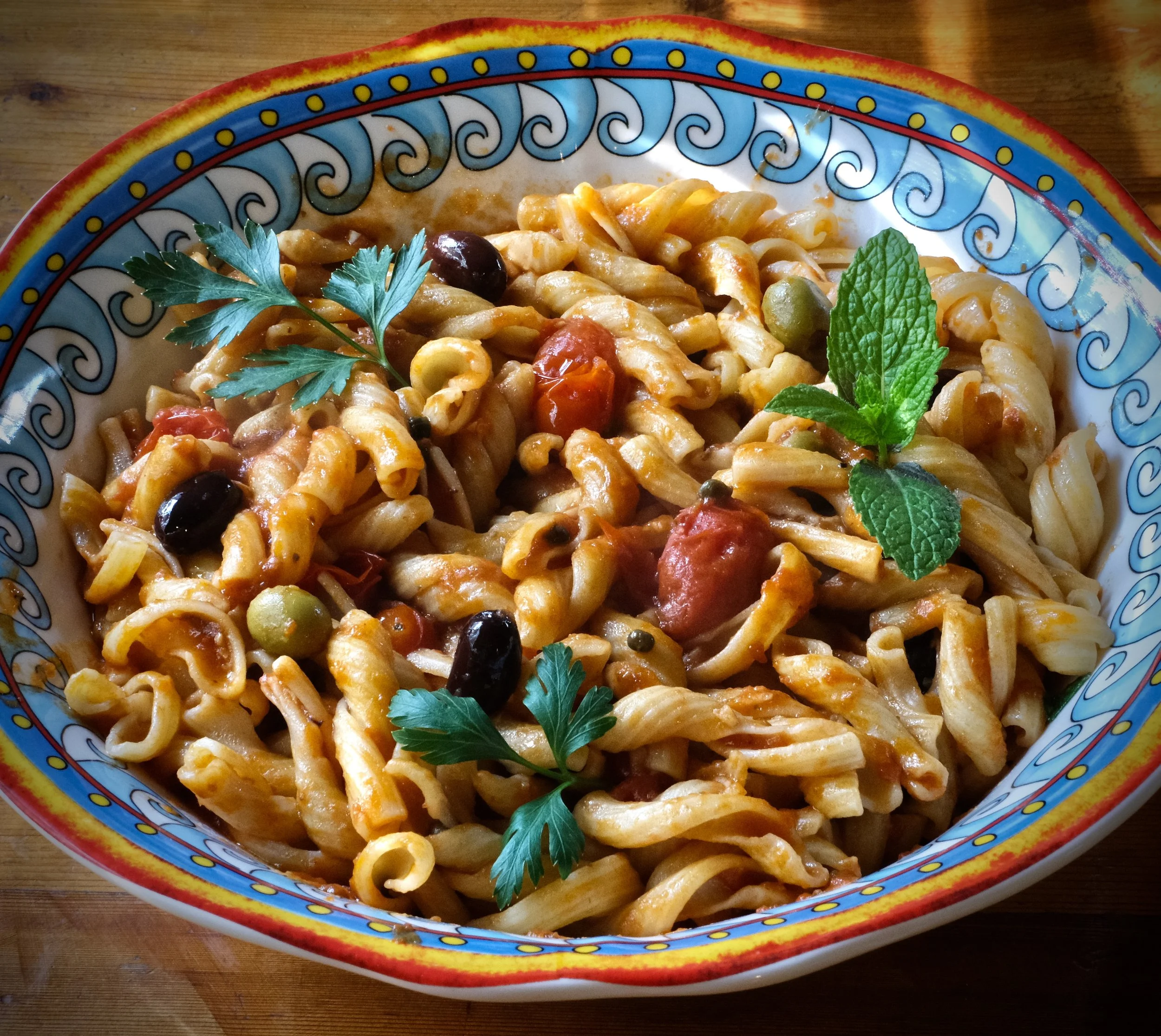 Tortiglioni Pasta alla Puttanesca with Tuna /