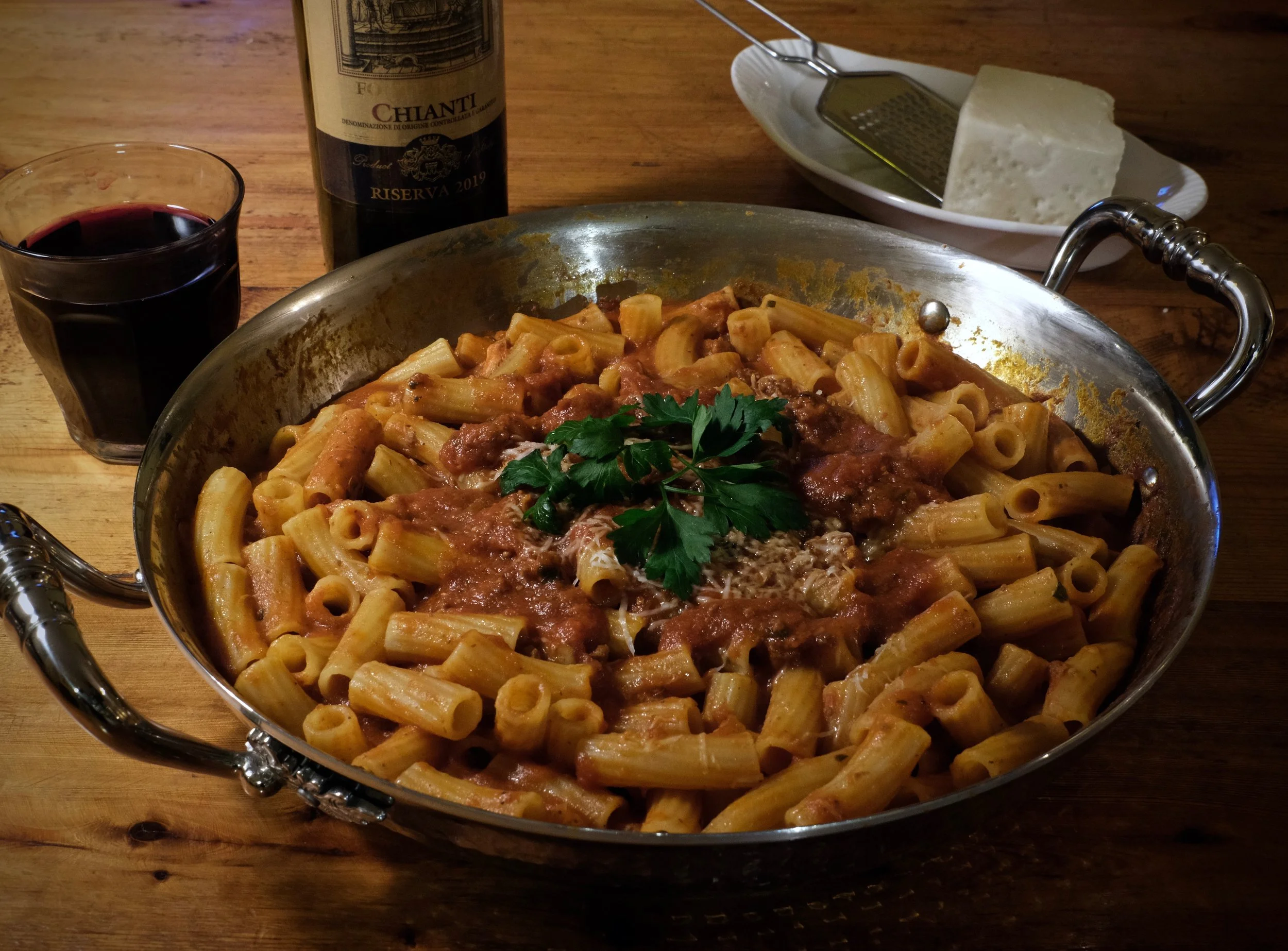 Homemade Mafaldine Pasta al Ragu Napoletano.