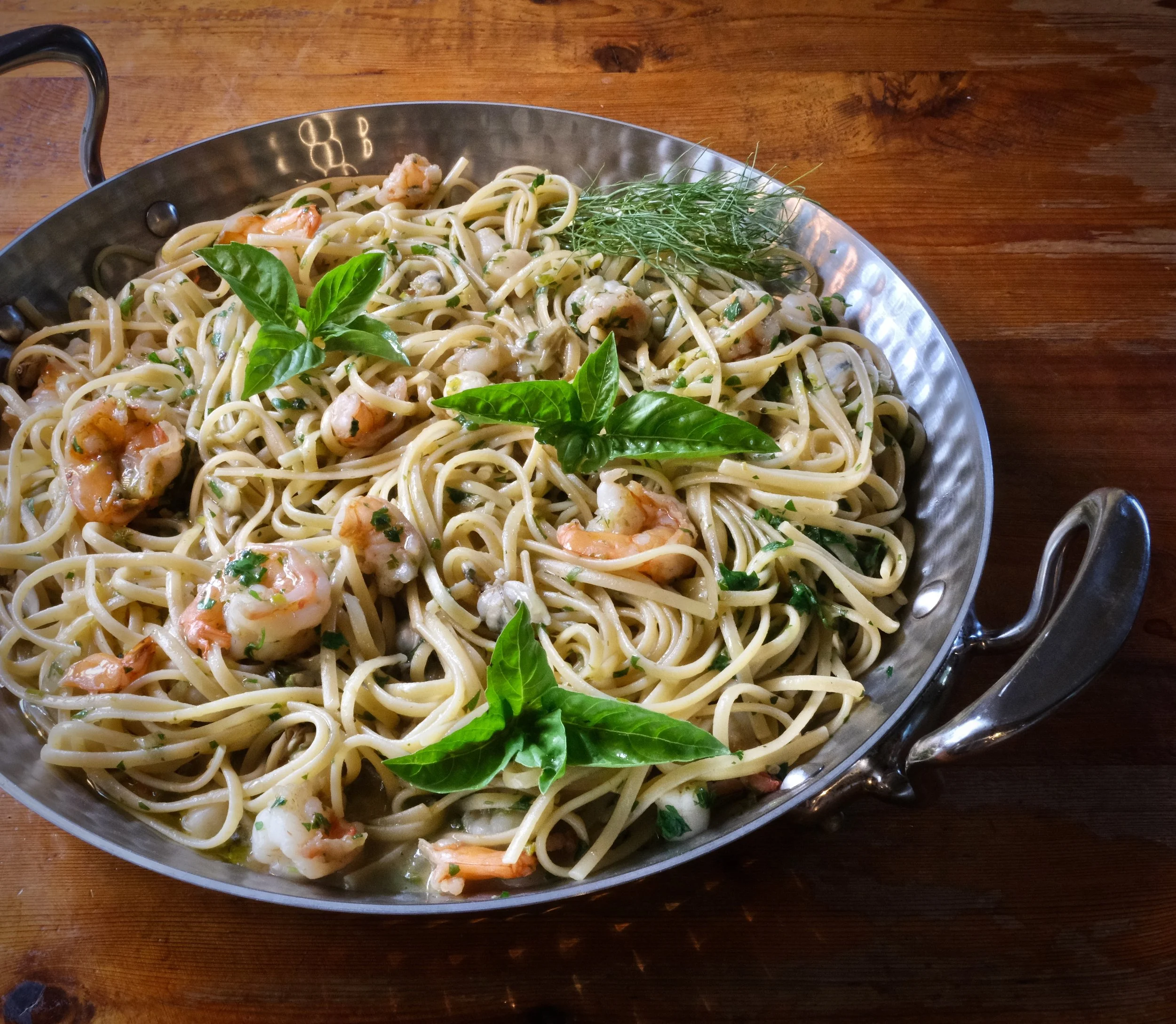 Linguine Fini al Limone con Gamberetti e Basilico.